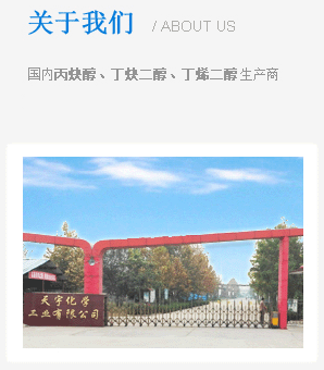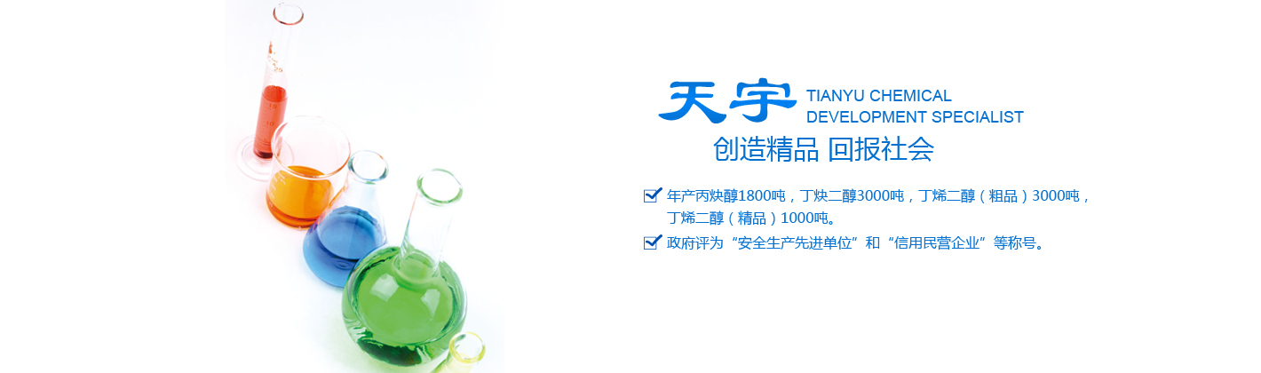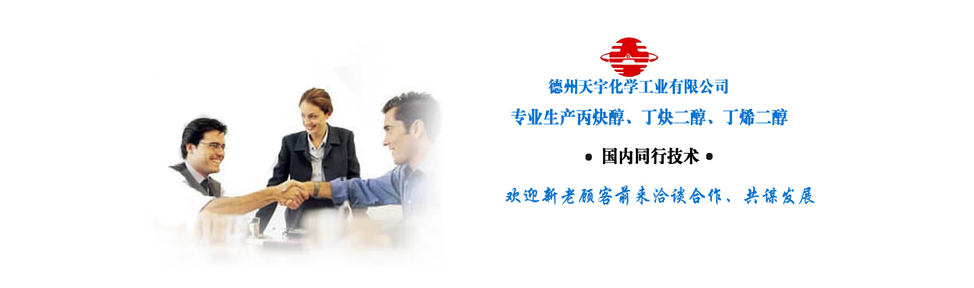 德州天宇化學(xué)工業(yè)有限公司         德州天宇化學(xué)工業(yè)有限公司成立于2002年5月,是一家集研發(fā)、生產(chǎn)和銷(xiāo)售于一體的高新技術(shù)企業(yè)。公司地處交通便利的德州天衢工業(yè)園、濱德高速出口處,西臨104國(guó)道和京滬鐵路,是國(guó)內(nèi)生產(chǎn)丙炔醇、1,4-丁炔二醇、1,4-丁烯二醇的企業(yè)。